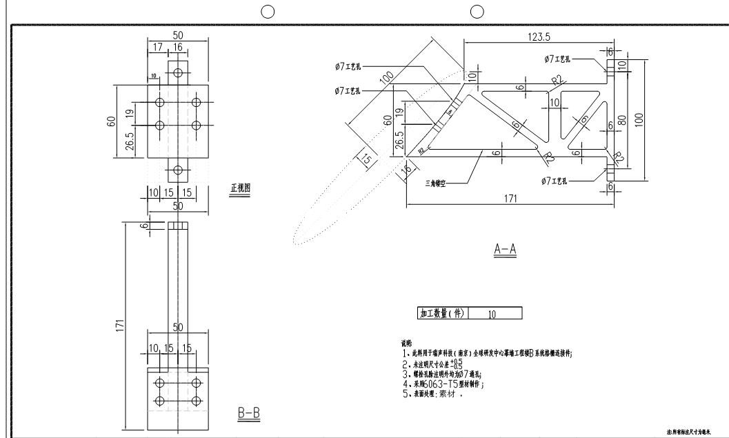 楔形铝质连接件,连接格棚用,可参考加工图A-MS-002。材质为6063-T5素材,无需表面处理。 包工包料报价